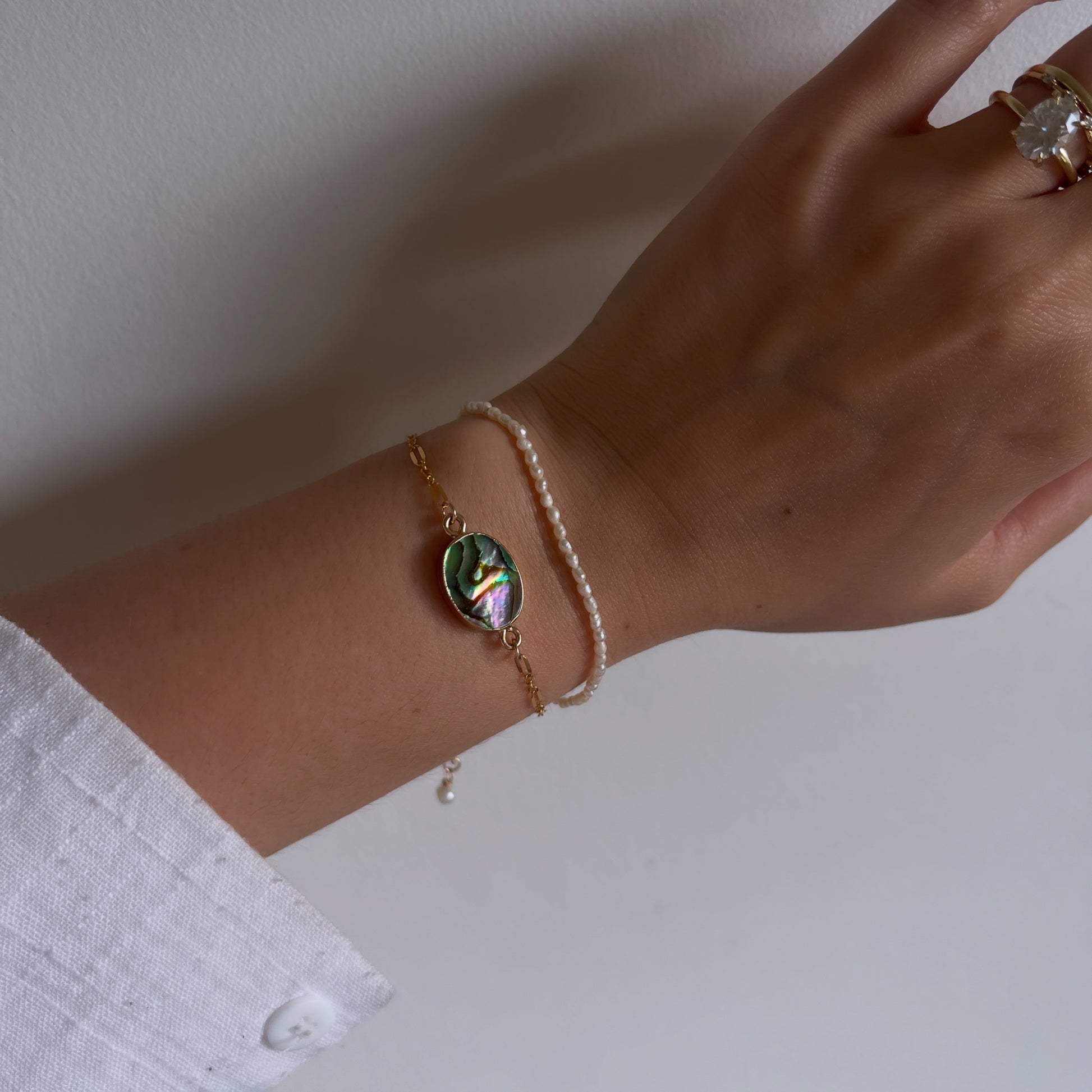 - Petite Pebble Pearl Bracelet is shown on the Right. This listing is for the pearl bracelet only.